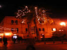 fire blazing, carpenters hacking at bits of wood, and then the manger
