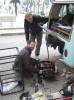 vehicle inside! The boat lads are amused by Newbie and direct us